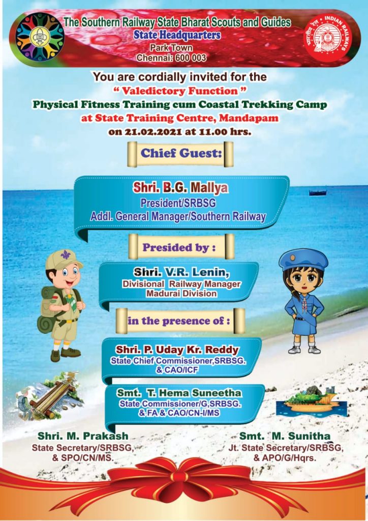 MADURAI: Mr.B.G.Mallya, Additional General Manager of Southern Railway, will inspect the famous Pamban Bridge and Rameswaram Railway Station in Tamil Nadu on 21st February 2021 (Sunday). A press release from the Southern Railway Madurai Division PRO here today informed that Mr.Southern Railway Additional General Manager Mr.B.G.Mallya will take part in the valedictory function of Coastal Trekking Camp for Rovers and Ranges….at Mandapam.