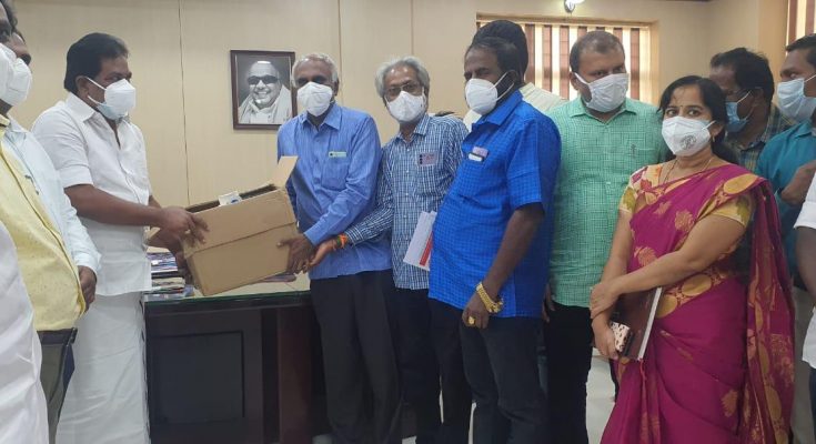 The association office-bearers led by its president Mr.S.P.Jeyapragasam handed over their contribution in the presence of Commercial Taxes Minister Mr.P.Moorthy, Madurai District Collector Mr.S.Aneesh Sekhar, Madurai Corporation Commissioner Mr.S.Visakan and others, according to information given by Mr.Jeyapragasam on May 26th 2021.