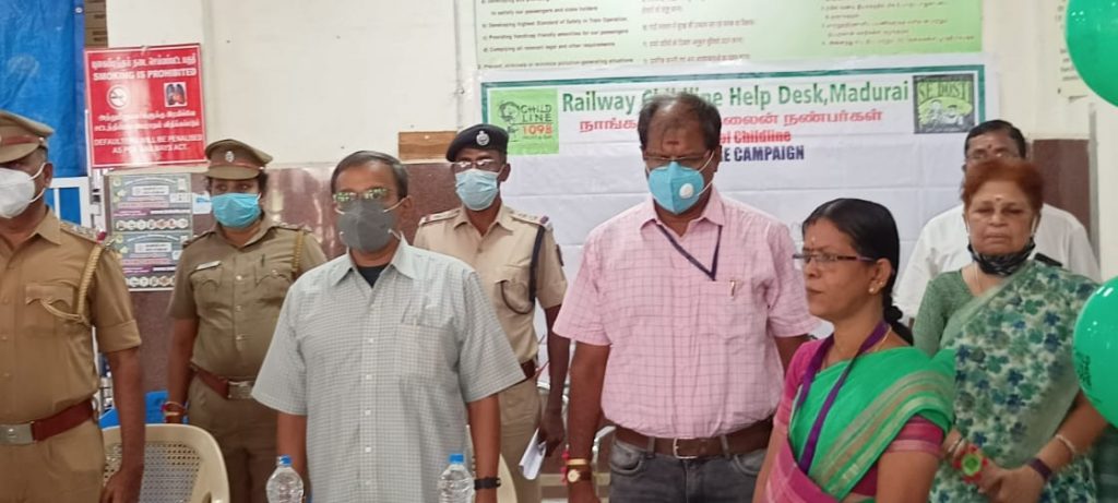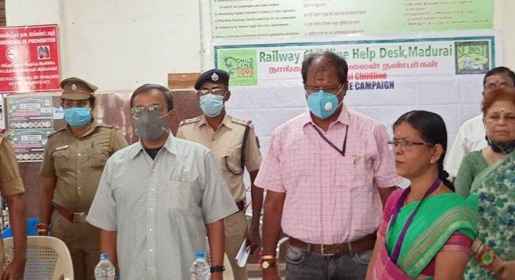 A press release received from the Southern Railway’s Madurai Division here today had informed that child help desks are functioning at Madurai, Tuticorin and Rameswaram. There are child help desks functioning at 143 railway stations of Indian Railways. These help desks will rescue children who leave their homes, missing children and abducted children. A Toll Free number 1098 is also working for this purpose, the press release added. On 14th November 2021, the awareness event was held in Madurai with participation of children and railway employees. Station Director and Divisional Commercial Manager Mr.D.L.Ganesh, Child Help Desk coordinator Anita, deputy station managers Mr.Prabhakar and Mr.Vijay were among those present at the child protection awareness week event in Madurai on 14th November 2021.