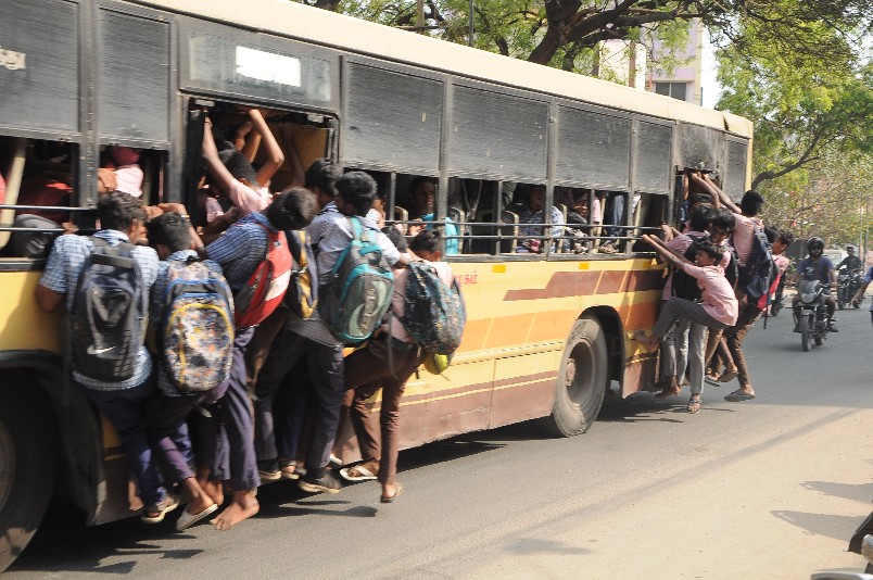 Bharat Bandh forces risky footboard travel for Madurai students