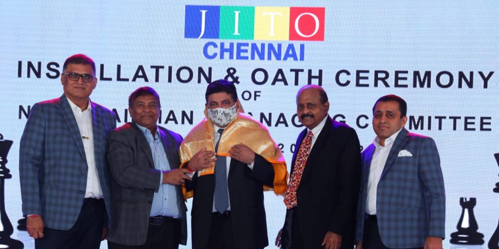 Mr.PTR has lauded the role being played by Jain community people to assist the society in the fields of healthcare, educational scholarships and various noble causes. The installation of new chairman and managing committee of JITO Chennai Chapter for the term 2022-24 took place on 16th October 2022-Sunday, with Mr.Ramesh Dugar as 8th chairman of JITO Chennai Chapter, Mr.Nehal Shah as chief secretary and Shalin A.Shah as treasurer and other executive committee members also installed in the presence of Tamil Nadu Finance Minister Mr.P.T.R.Palanivel Thiagarajan.