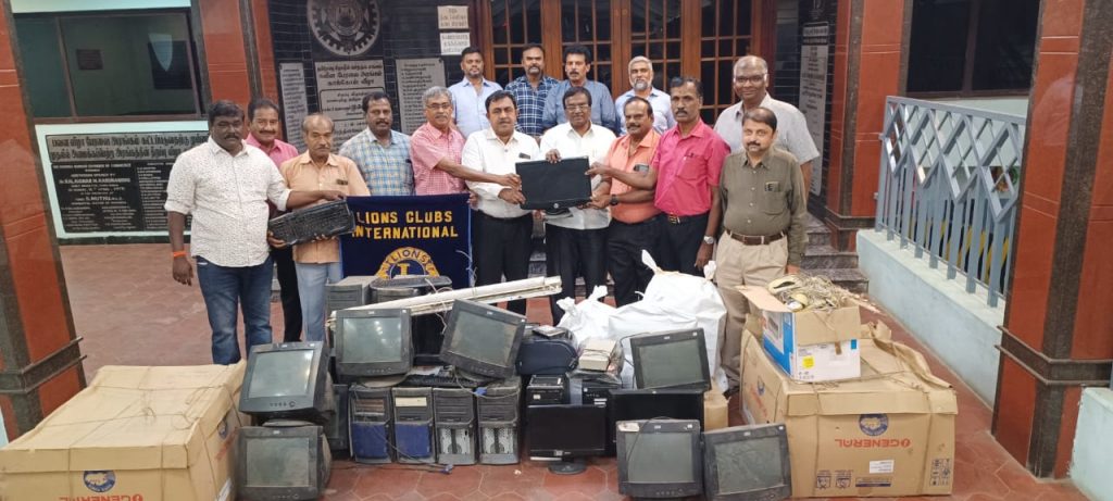 Ln.Monikantan has said that the Lions Clubs International in India has entered into an agreement with Hindustan e-waste Management Company and it will do various stages of segregation after collecting devices at various points. In Madurai, the Lions Clubs are collecting the e-waste items at TN Chamber and at Union Club.