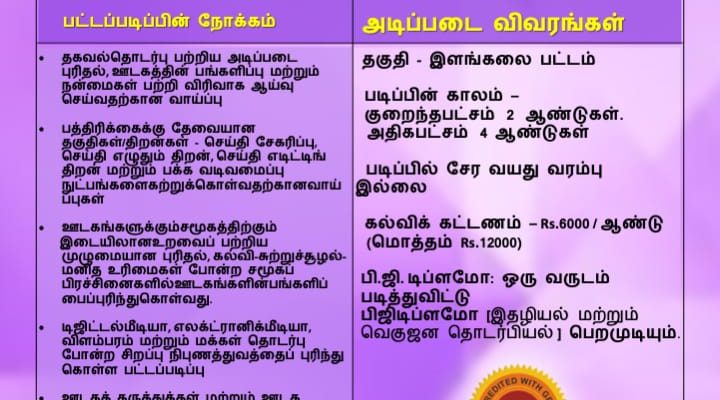 “This is a first of its kind programme in India. Classes will be in online mode for this two years course. It is going to be a flagship program of IGNOU for those youngsters and aspirants who want to develop their career in mass media communication. Admission for the ongoing January 2023 session is open for online registration. Annual fee is Rs.6,000 and one can take maximum four years to complete this course M.A. in Journalism and Mass Communication, without any additional fees,” according to information received from IGNOU Regional Centre in Madurai today- on 16th February 2023.