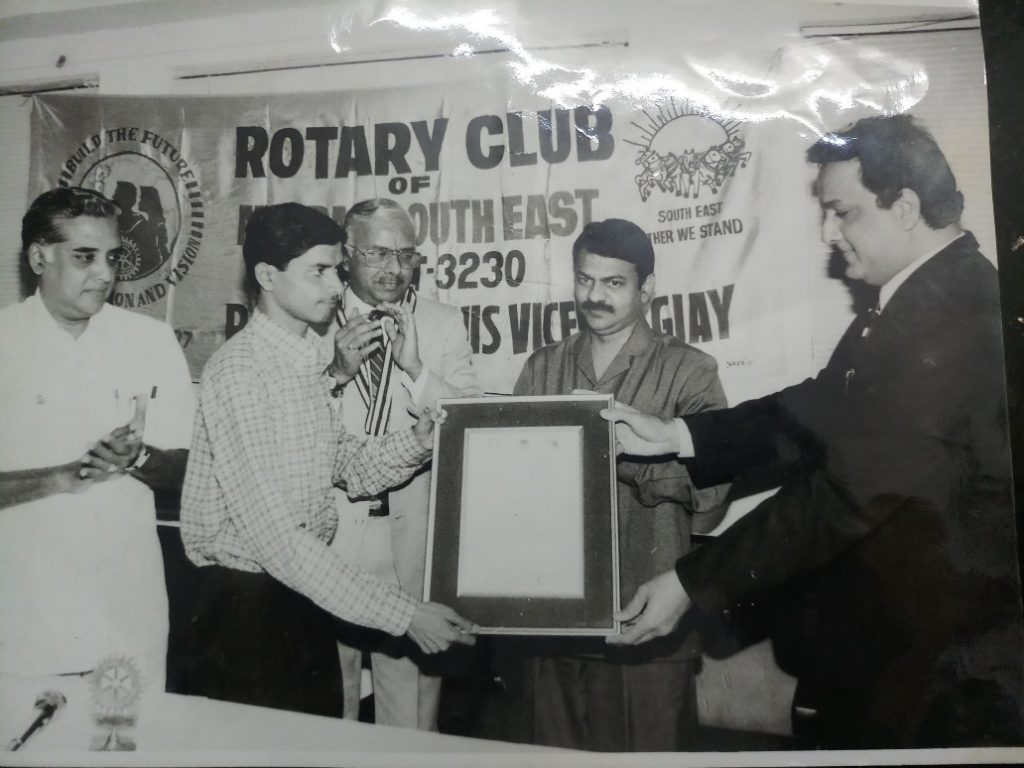 Shastry V Mallady receiving Rotary vocational excellence award in Chennai in 1997 from Rotary District 3230.