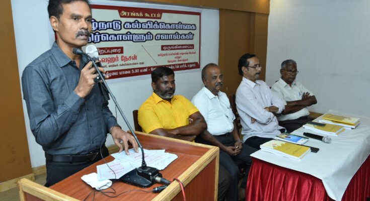 He stressed that “what our people need, what the youth needs in future are missing in the proposed policy. The needs of common man, our socially and economically backward people are missing in the policy that is being given final shape. That is the crux of the matter, our deserving sections of society are being alienated in the proposed education policy by Government of Tamil Nadu. I took the right decision, there were threats, there was some domination in committee discussions, there was external influence by some persons. So, what next is now the important point for Tamil Nadu because our people needs to be sensitized about that education policy that is going to come in our State, whether it is being market-driven etc,”, Prof.Jawahar Nesan said while speaking at a special awareness meeting organized by ‘Save Higher Education Tamil Nadu Movement’ in Madurai on May 28th 2023 in association with various associations who are demanding that Tamil Nadu should have a just, equitable, democratic and secular educational policy because the Tamil Nadu government had opposed the National Education Policy on that ground.