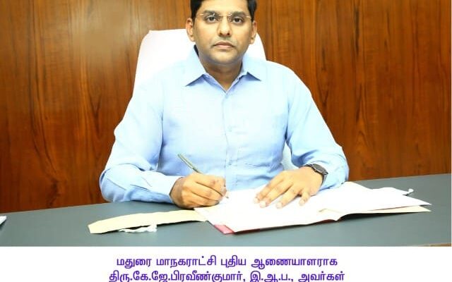 MADURAI: Mr.K.J.Praveen Kumar has today assumed charge as Madurai Corporation Commissioner. After taking charge here on June 9th 2023, he said that his primary focus will be to coordinate and implement all the development projects that are underway in the corporation area right now and to work for carrying out Smart City projects as per plan.
