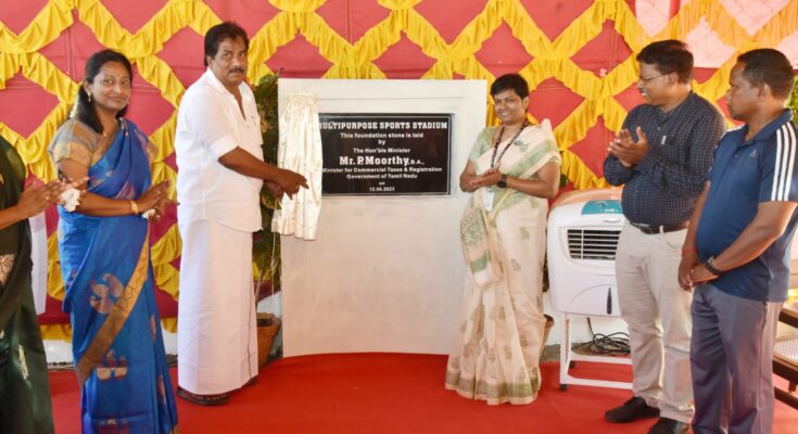 MADURAI: Commercial Taxes and Registration Minister Mr.P.Moorthy had laid the foundation stone for constructing a multipurpose sports stadium at Lady Doak College (LDC) in Madurai on June 12th 2023.
