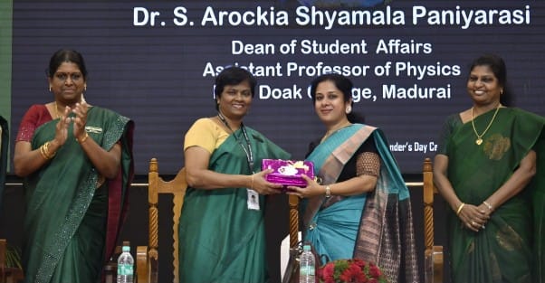 “A leader should be a person of integrity, courage and boldness. A leader must have an innate hunger for justice and righteousness. Women in society must be able to live with dignity. Leadership is about finding solutions and not gossiping or mocking others. A true leader must have the thirst for truth and stand for the truth and this is the motto of Lady Doak College in Madurai,” the chief guest Ms.Minu Pramod has said and expressed her gratitude to the college.