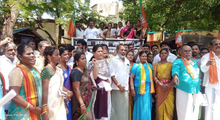 Among those who participated in the demonstration include Madurai urban district BJP office-bearers Rajkumar, Balakrishnan, Meena, Pari Raja, Senthilvel, Baskaran, Ravichandra Pandian and others.