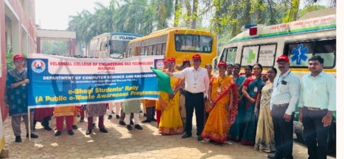 MADURAI: The Department of Computer Science of Velammal College of Engineering and Technology (VCET) in Madurai had organised e-Bhogi programme here on February 15th 2024 to create e-waste public awareness, in association with the college’s NSS wing and Reccsar Pvt Ltd.