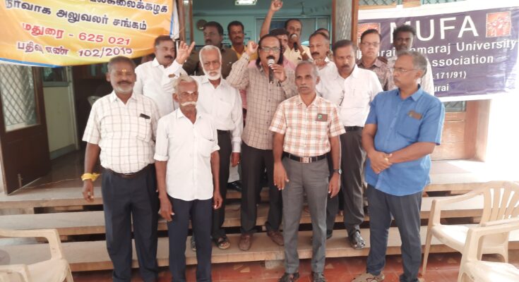 Teaching and non-teaching staff of MKU along with a large number of university pensioners and members of three important associations- MKU Administrative Staff Association, MKU Faculty Association and MKU Pensioners Associations continued their protest in the university campus here today condemning the indifferent and lethargic attitude of Vice-Chancellor, Registrar and a few other senior level officials of the varsity.