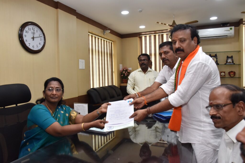 He submitted the nomination papers to Madurai District Collector M.S.Sangeetha on March 25th 2024 at the district collectorate here. Earlier, a large number of BJP cadres had turned up and assembled near the Gandhi Museum before Prof.Sreenivasan proceeded to file the nomination papers.