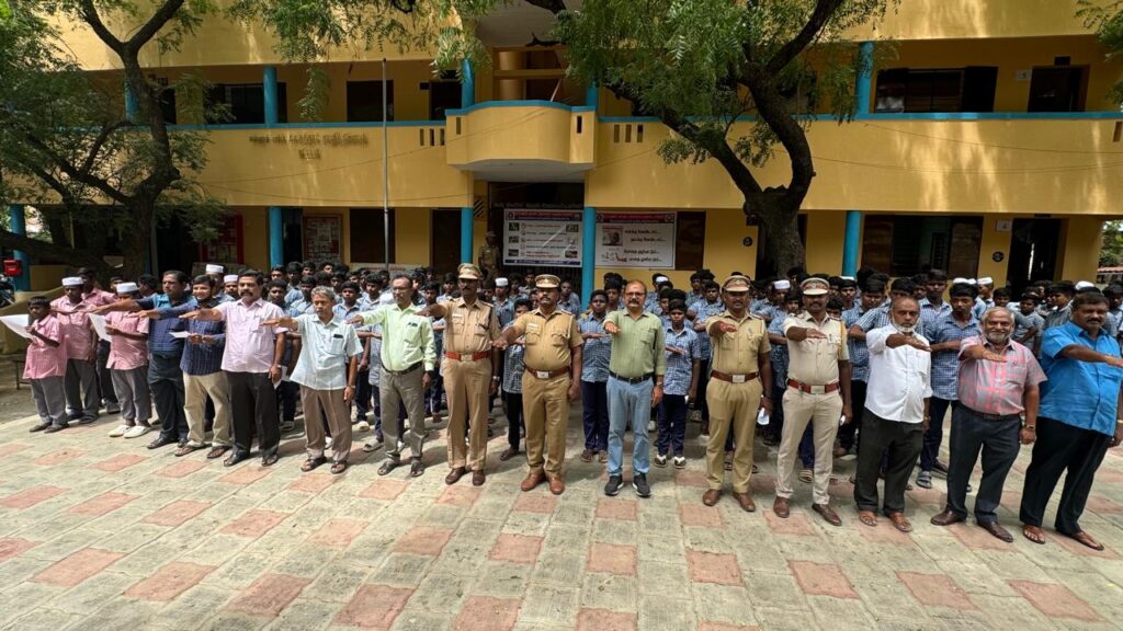 School HM Mr.Sheik Nabi had presided over the event while Anna Nagar Police Assistant Commissioner Mr.Govindaswamy spoke about the harms of using drugs.