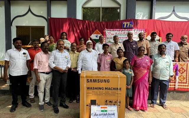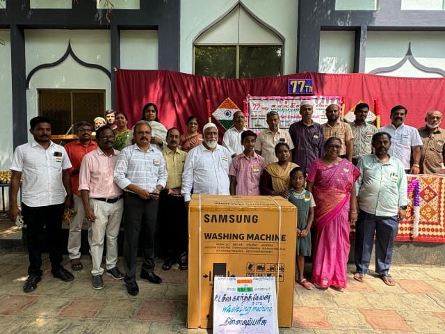 The washing machine was presented to him at the 78th Independence Day celebration held school campus yesterday, where the student was felicitated for securing NMMS scholarship. SACS Managing Partner Mr.Gopinath gave incentive to the student, the press release said.