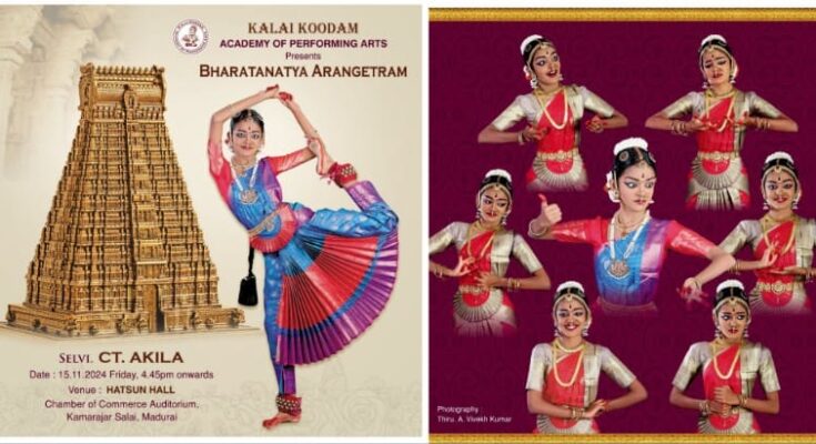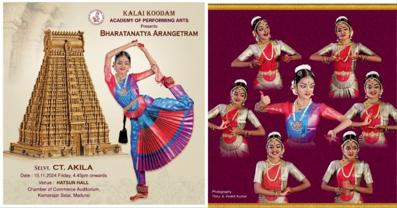 The ‘Bharatanatya Arangetram’ of selvi CT.Akila will take place at TN Chamber hall here on November 15th evening and the special invites include Rotary International Director Elect 2025-27 Rtn.AKS Er.Muruganandam M (MMM) who is the Chairman of Excel Group of Companies, film actor Dhamu and Tmt.Kavitha Charles, founder and director, Shree Kavithalaya in Chennai.