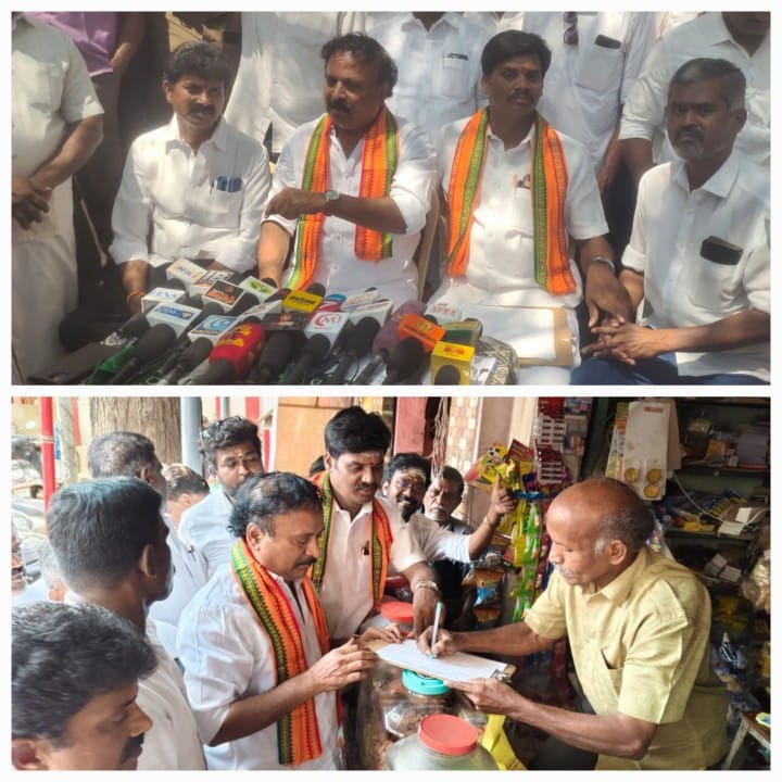 BJP Madurai city unit president Mr.C.M.Mari Chakkaravarthi and party cadres took part in the signature campaign drive at Simmakkal area here today morning- March 6th 2025- in response to the call given by BJP State president Mr.K.Annamalai in favour of three-language policy.