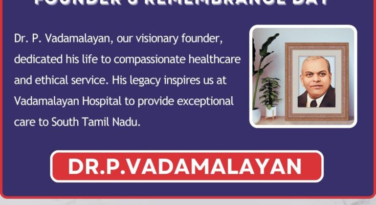 Dr.Pugalagiri Vadamalayan, Chairman and Managing Director, Vadamalayan Hospitals, has said that the founder’s legacy of compassionate healthcare and social service continues to inspire the management and staff.