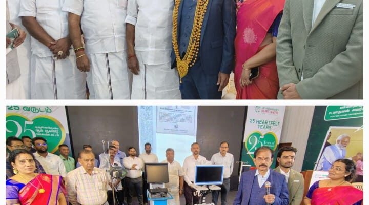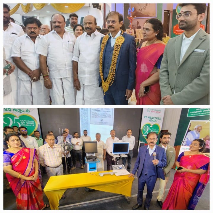 A special event was organised here on June 25th 2025 to celebrate the 25 years of first ever angioplasty which was done in Madurai and in south Tamil Nadu by heart specialist Dr.Madhavan on June 20th 2000 when he was working at Apollo Hospital in Madurai.