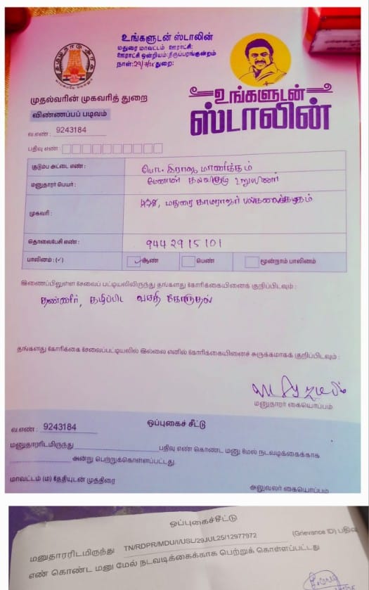 The petition was submitted at ‘Ungaludan Stalin’ programme camp held at Vadapalanji in Tirupparankundram block, near the university, on July 29th 2025 by former member of MKU Academic Council and Senate Dr.P.Rajamanickam who had highlighted the poor sanitation conditions in the varsity campus presently.