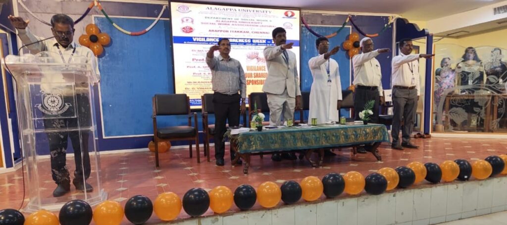 Dr.MA.Velusamy, Professor and Head incharge, Department of Social Work at Alagappa University . welcomed the gathering and emphasized about this year’s theme ‘Vigilance: Our Shared Responsibility’ which emphasizes collective action to combat corruption.