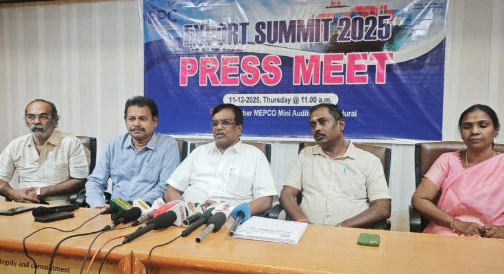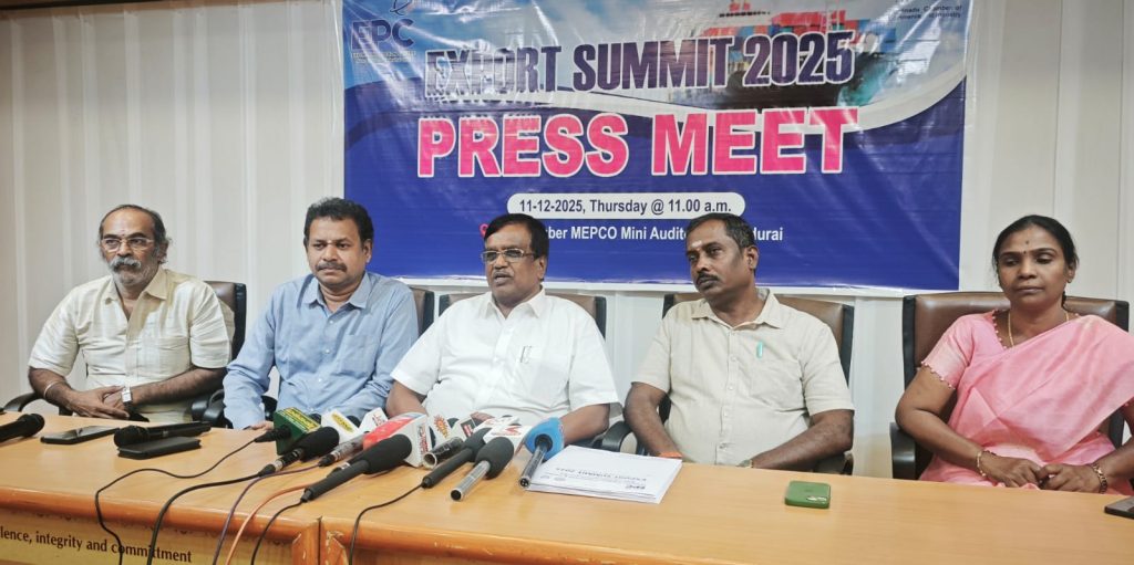 “Export Summit of our TN Chamber through EPC is an annual event and we have a clear focus areas like e-commerce, IT and ITES, tourism and travel, services sector, seafood, agro field, food processing, textiles, startups, Knowledge Process Outsourcing, automobile ancillaries etc. This year we are organizing in Madurai on December 13th 2025 at TN Chamber premises and we are expecting good outcome for boosting exports from Madurai through this exclusive summit,” TN Chamber president Dr.N.Jegatheesan and Export Promotion Centre chairman Mr.G.Rajamurthy told reporters at the press meet in Madurai today.