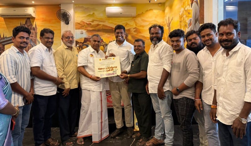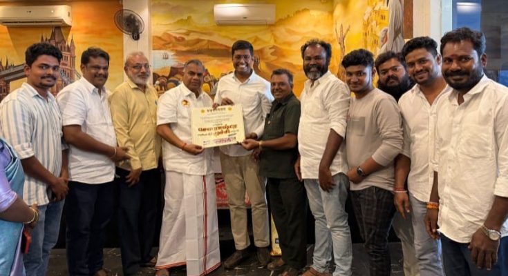 “Tamil Nadu Sourashtra Political Conference is being conducted in Madurai on December 28th 2025. TVK Madurai North district unit secretary Mr.Vijay Aanban Kallanai along with party’s office-bearers including Mr.M.M.Gopison, Mr.Dinesh, Mr.Prasanth and Mr.Balan had met TVK general secterary Mr.N.Anand and invited him to Madurai for this political awakening conference,” the press release said.