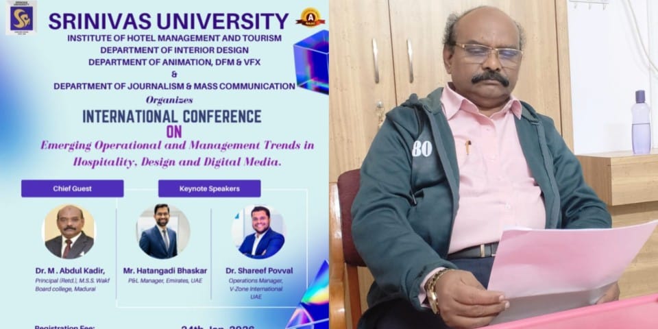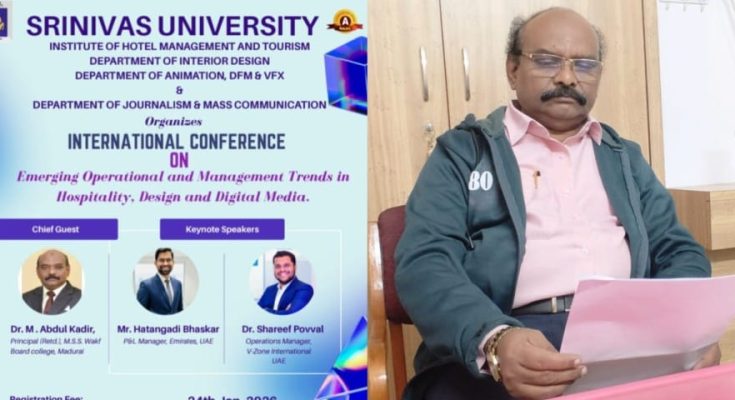 “In today’s digital era, the sectors of hospitality, deisgn and digital media have become interconnected and this combine with human values will make you successful in your business,” he said while speaking at an international conference conducted by Srinivas University in Mangaluru in Karnataka on January 24th 2026 on the topic “Emerging Operational and Management Trends in Hospitality, Design and Digital Media’.
