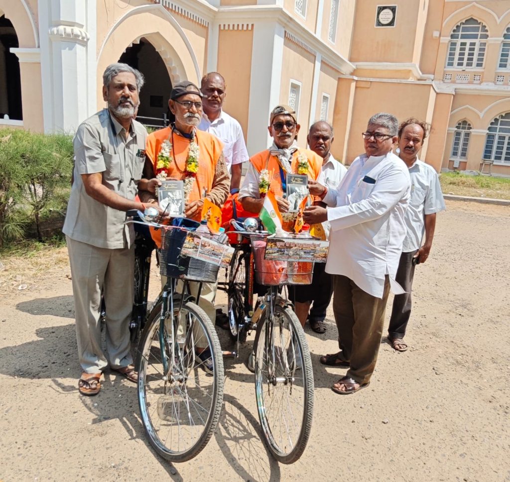 The brothers- Mr.Anand Dubey (70) and Mr.Devendra Dubey (72)- who hail from Narsinghpur in Madhya Pradesh had culminated their cycle yatra in Madurai today-February 6th 2026- after paying floral tributes to the Father of the Nation at Gandhi Memorial Museum.