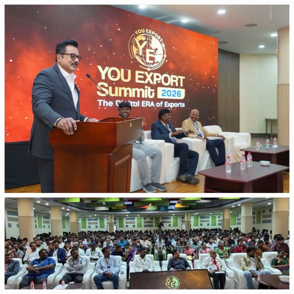 Actor Mr.Sarathkumar, who is also the Chairman of Prompt Terminal Pvt Ltd at Tuticorin, was addressing a huge gathering of aspiring young entrepreneurs at ‘You Export Summit 2026’ at Agro Food Trade Chamber AFTC campus in Sikkanthar Chavadi in Madurai today-February 28th 2026 which was held with the theme ‘The Digital Era of Exports’.