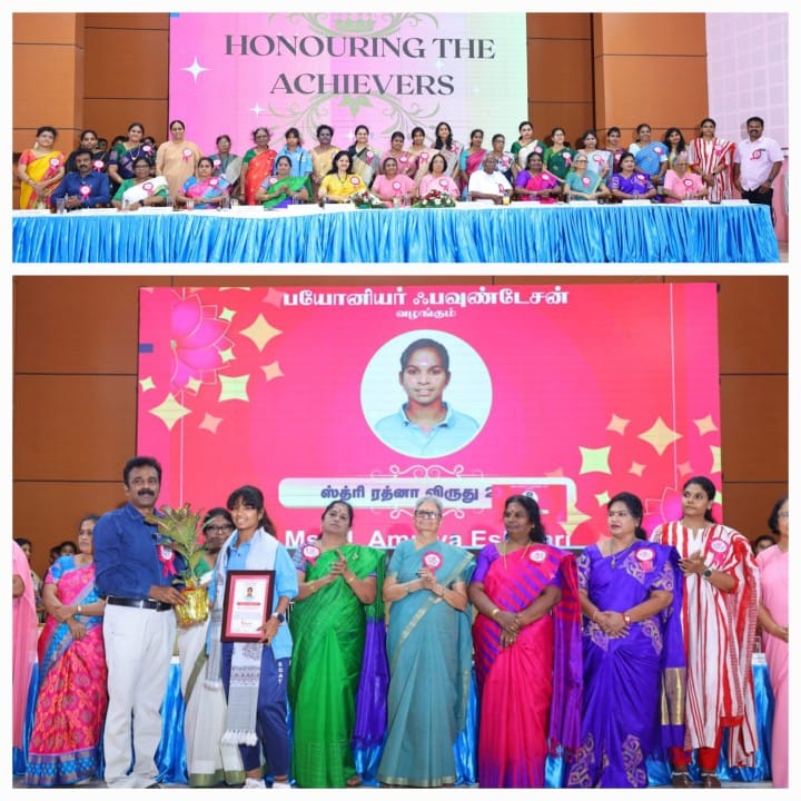 The awards ceremony event was organized in the college campus here yesterday jointly with Pioneer Foundation-Madurai by presenting Women Achiever Awards to women who have made significant impact in diverse fields such as education, social service, entrepreneurship, community development and governance.