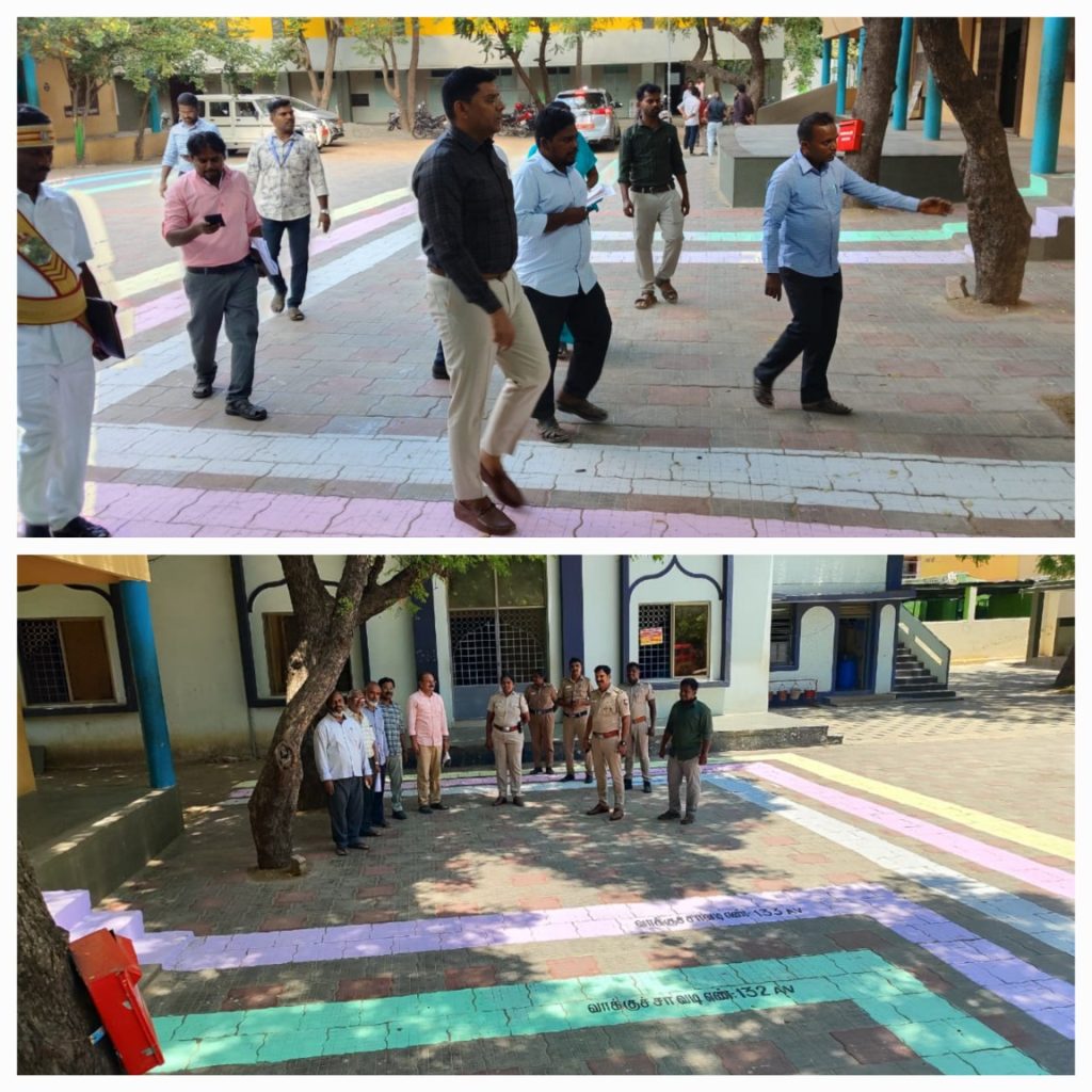 Madurai District Collector Mr.K.J.Praveen Kumar had visited Al-Ameen School on April 21st 2026 to see the multi-colour pathway queue lines created for the voters of 14 polling booths who will come to this center for voting and the collector also inspected the arrangements made inside the polling stations.