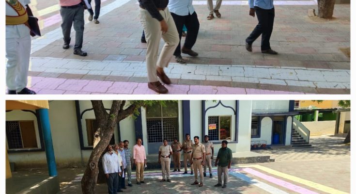Police personnel including K.Pudur police station inspector Mr.Thiagarajan, sub-inspector Ms.Anitha and school Headmaster Mr.S.Sheik Nabi were among those present in school campus during the District Collector’s inspection of polling booths at Al-Ameen Higher Secondary School in K.Pudur in Madurai yesterday.