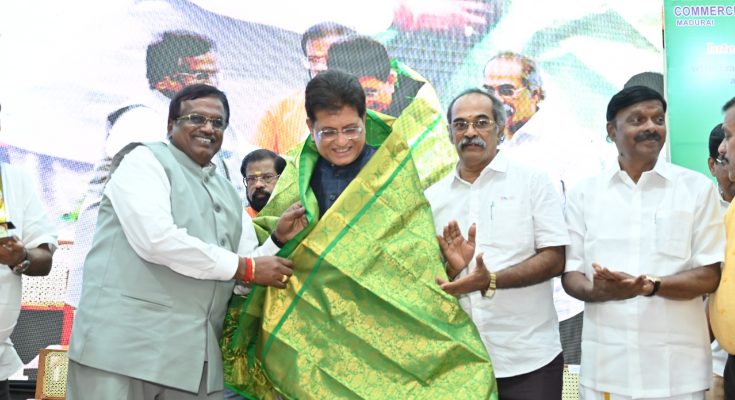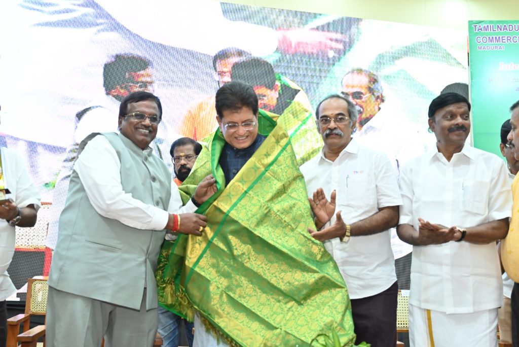 Union Commerce and Industry Minister Mr.Piyush Goyal’s interaction meeting at TN Chamber in Madurai on April 12th 2026 where he was honoured by chamber president Dr.N.Jegatheesan (FILE PIX).